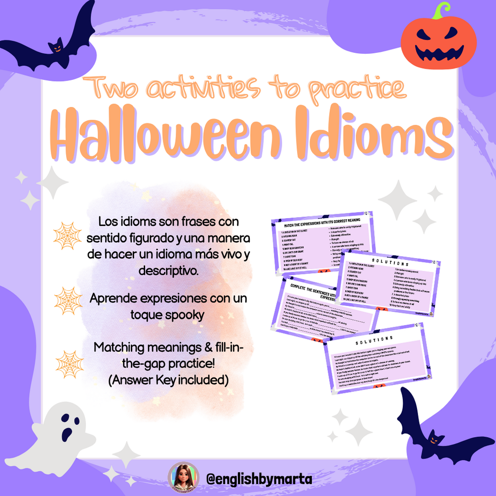 Es perfecto para repasar idioms con un toque temático 👻🎃 y hacer que tus alumnos aprendan nuevas expresiones de forma divertida y significativa 💡