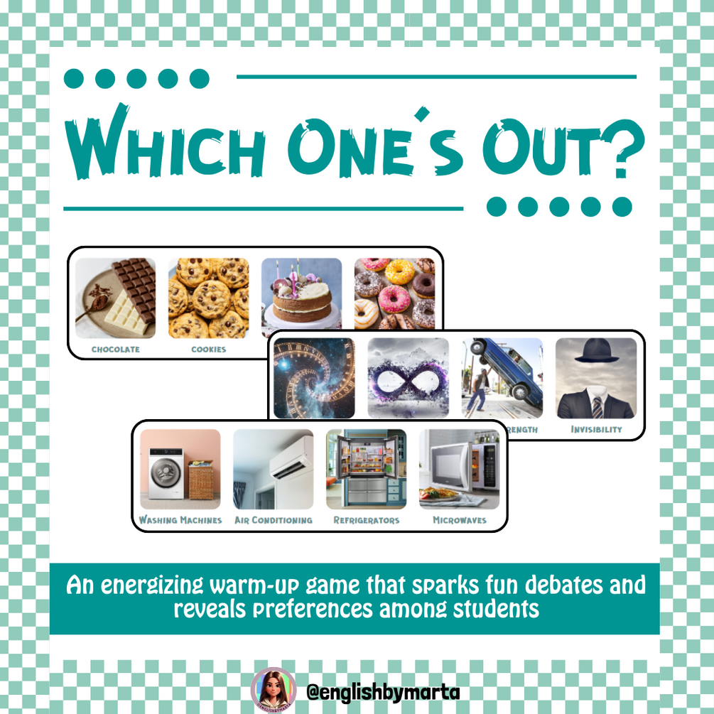 Les presentamos a los alumnos 4 imágenes de categorías variadas y tienen que decidir cuál eliminarían debatiendo y dando sus correspondientes razones.
