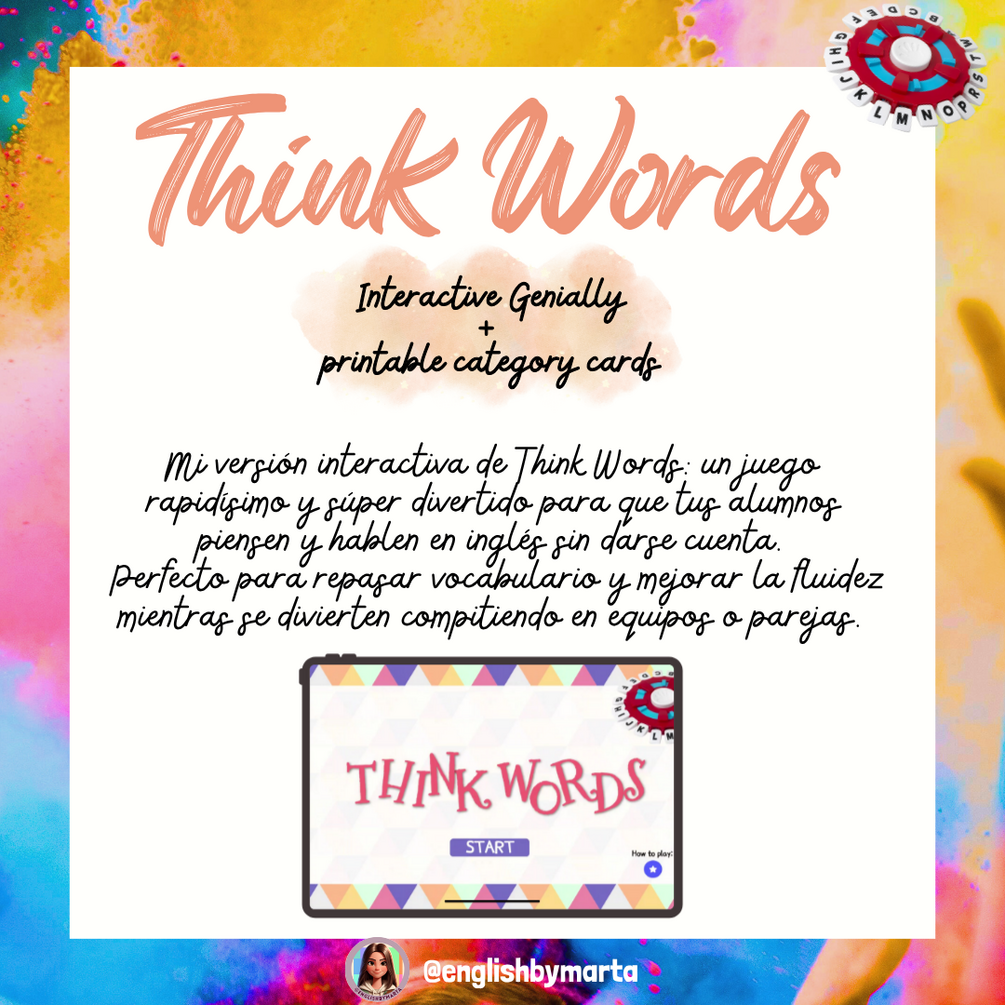 Versión digital del ya clásico Think Words. Una forma divertida y súper dinámica de repasar vocabulario en cualquier nivel y trabajar la agilidad mental.